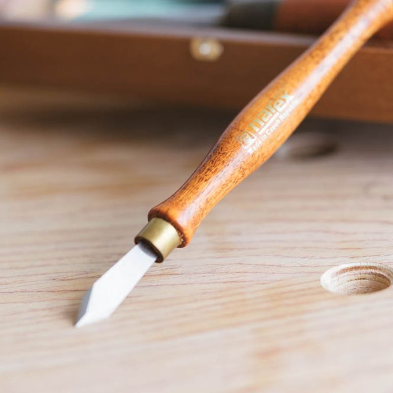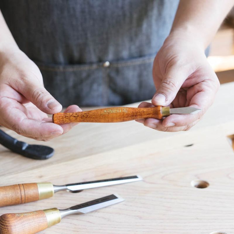 Narex Marking Knife เป็นมีดคมสองด้านใช้สำหรับขีดบากร่องไม้ เพื่อใช้ในงานกำหนดขนาด ก่อนตัดหรือประกอบชิ้นงาน ด้ามจับทำจากไม้ Hornbeam ย้อมสีธรรมชาติ ตัวเหล็กเป็น High Carbon Cr-Mn (Chromium Manganese Steel) ชุบแข็งมาที่ 59 HRC
