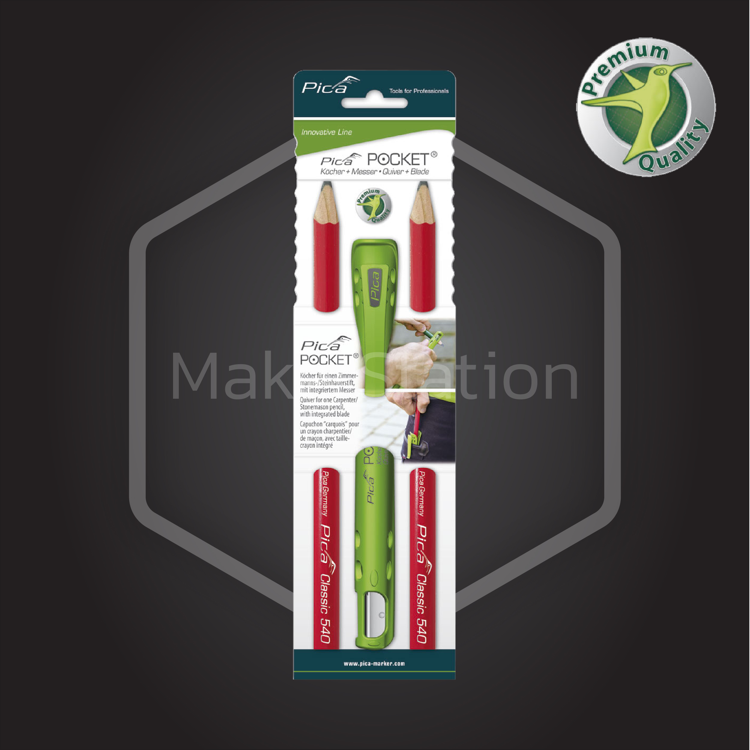 ดินสองานไม้ Pica มีปลอกเก็บ และมีดเหลาในชิ้นเดียวกัน